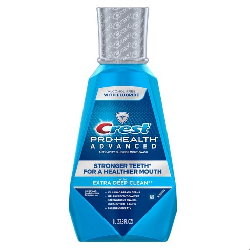 Crest Pro - Health Advanced with Extra Deep Clean mouthwash helps you have stronger teeth for a healthier mouth. It kills bad breath germs, helps prevent cavities, strengthens enamel, cleans teeth and gums, and freshens breath for a healthier mouth. Crest pro - health advanced with extra deep clean mouthwash helps you have stronger teeth for a healthier mouth. When added to a good oral care routine by strengthening enamel.